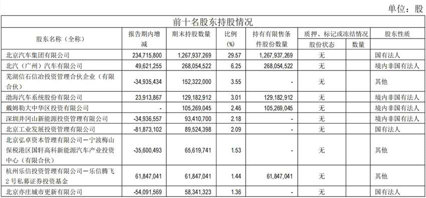 截至二季度末,北汽藍(lán)谷股東戶數(shù)為18.86萬戶,較一季度增加13.69萬戶,環(huán)比增加264.82%。機(jī)構(gòu)投資者樂信騰飛2號(hào)私募證券投資基金、北京亦莊城市更新有限公司新進(jìn)入北汽藍(lán)谷前十大股東之列,并持股比例為1.44%、1.36%。