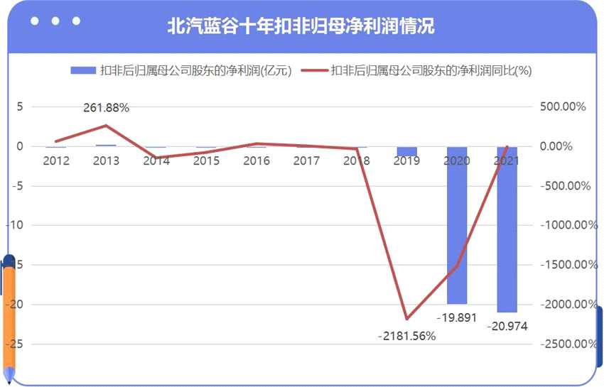 產(chǎn)銷量未達(dá)預(yù)期,北汽藍(lán)谷現(xiàn)有毛利無法覆蓋固有成本費(fèi)用,同時(shí),自行研發(fā)的非專利技術(shù)攤銷也進(jìn)一步增加。因此,北汽藍(lán)谷中報(bào)扣非歸母凈利潤虧損達(dá)到歷史最低點(diǎn)。