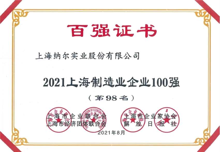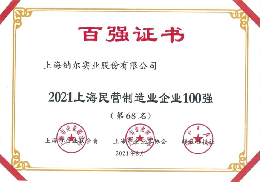 雙百強(qiáng)!納爾股份入圍上海制造業(yè)企業(yè)及上海民營制造業(yè)企業(yè)百強(qiáng)
