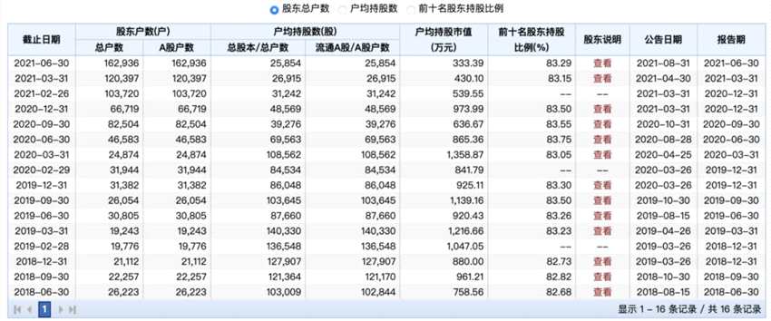 從490億到7000億,7年多時間,海天也給予了投資者豐厚的回報。截至2021年6月30日,海天味業(yè)股東達(dá)162936戶。