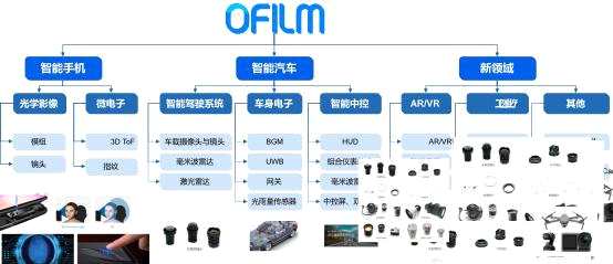 歐菲光主營業(yè)務(wù)為智能手機(jī)、智能汽車及新領(lǐng)域業(yè)務(wù)。公司主營業(yè)務(wù)產(chǎn)品包括光學(xué)影像模組、光學(xué)鏡頭、微電子及智能汽車相關(guān)產(chǎn)品等,廣泛應(yīng)用于以智能手機(jī)、平板電腦、個人電腦、可穿戴設(shè)備等為代表的消費(fèi)電子和智能汽車領(lǐng)域。
