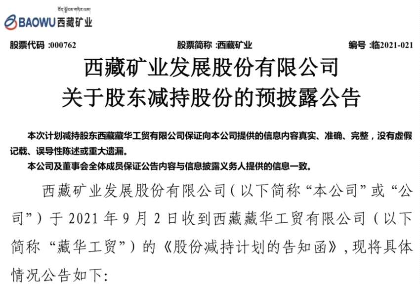 9月2日,西藏礦業(yè)收到深交所關(guān)注函,并披露股東減持計(jì)劃。