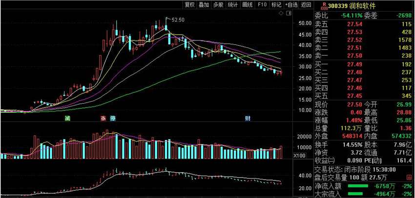 9月3日,潤和軟件報(bào)收27.50元,盤中最低跌至25.86元。一個(gè)多月以來,潤和軟件的股價(jià)相對于52.50元高點(diǎn)來說,接近“腰斬”。