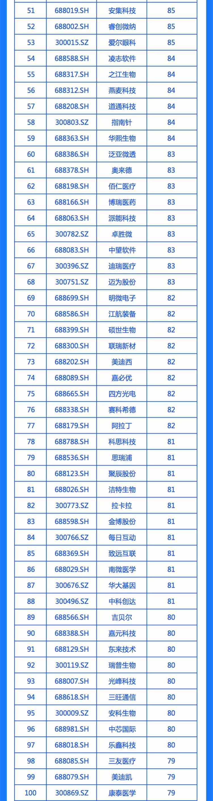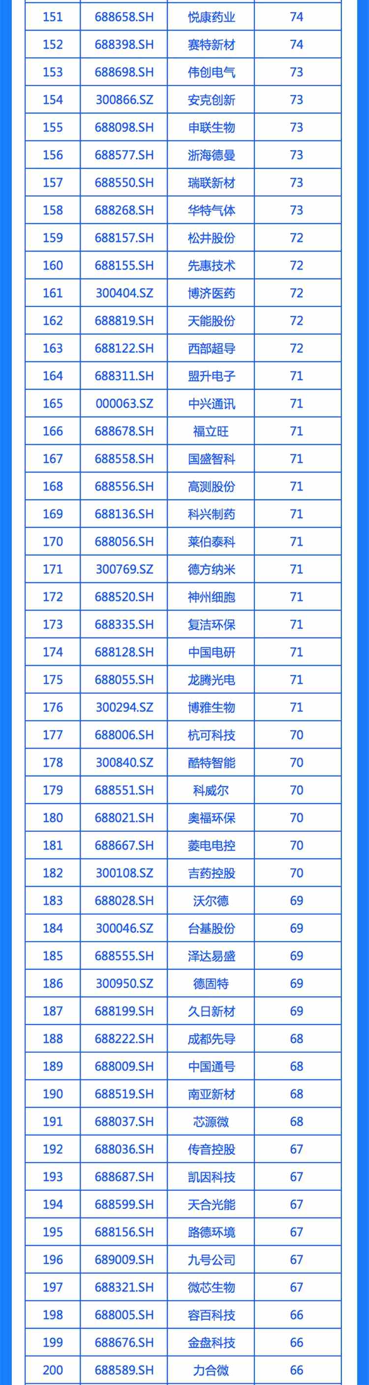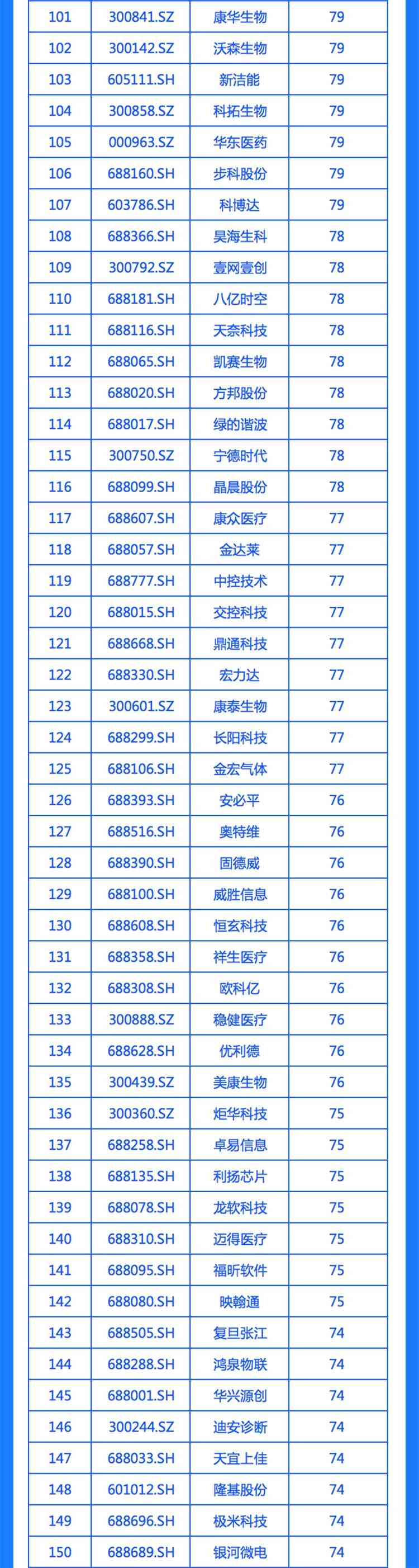 從行業(yè)方面看,新醫(yī)療行業(yè)受集采影響,調(diào)整較為明顯,排名出現(xiàn)整體下滑,僅邁瑞醫(yī)療仍穩(wěn)居前三?!?a href="http://m.xfjyyzc.com/gegu/688016/" target="_blank" title="心脈醫(yī)療(688016)股票分析,新聞,資金流向,財務(wù)數(shù)據(jù)" >心脈醫(yī)療(688016)、股吧】、樂普醫(yī)療(300003)、東方生物等排名均下降,其中君實(shí)生物下降幅度最大,從上期榜單的第9名跌至第219名。