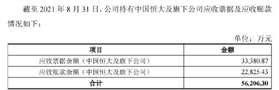 除上述逾期部分欠款外,三棵樹對恒大及旗下公司仍有5.62億元的應收款項,其中應收票據(jù)3.33億元,應收賬款2.28億元。