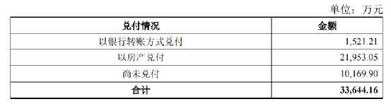 已兌付金額中恒大以銀行轉(zhuǎn)賬付款1521萬元,2.19億元用房產(chǎn)抵債。
