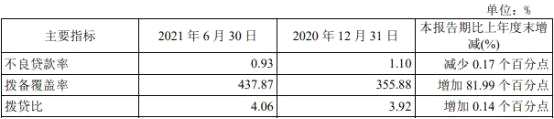 截至2021年6月末,無錫銀行五級分類不良貸款余額10.50億元,不良貸款率0.93%,較年初下降0.17個百分點。貸款撥備覆蓋率437.87%,較年初提升81.99個百分點。