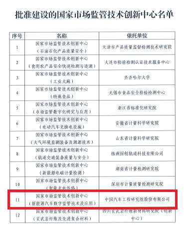 中國(guó)汽研獲批國(guó)家市場(chǎng)監(jiān)管技術(shù)創(chuàng)新中心(新能源汽車(chē)數(shù)字監(jiān)管技術(shù)及應(yīng)用)