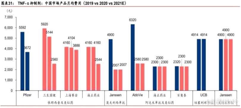 2020年,阿達(dá)木單抗、英夫利昔單抗進(jìn)入醫(yī)保后大幅降價(jià),其月均費(fèi)用從 5000-6000元降至2000-2500元,面對(duì)競(jìng)爭(zhēng)對(duì)手的“攻勢(shì)”,去年10月起,益賽普也相應(yīng)進(jìn)行調(diào)價(jià),月均治療費(fèi)用已從此前的5144元降至2560元。