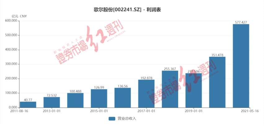 圖1 歌爾股份歷年?duì)I收狀況