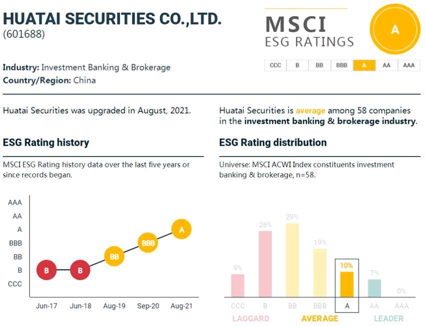 境內(nèi)證券業(yè)首家!華泰證券MSCI ESG評(píng)級(jí)躍升至A級(jí)