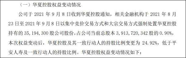 本次權(quán)益變動后,華夏控股及其一致行動人的持股比例變更為24.92%,低于平安人壽及其一致行動人的持股比例,故平安人壽及其一致行動人成為華夏幸福第一大股東。
