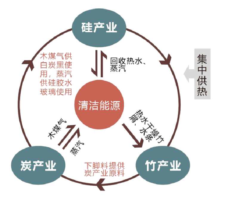 循環(huán)經(jīng)濟(jì)產(chǎn)業(yè)園于2019年6月列入省級(jí)循環(huán)經(jīng)濟(jì)示范試點(diǎn)園區(qū),園區(qū)通過以三大創(chuàng)新技術(shù)為核心,通過熱能、物料兩大循環(huán),將竹、炭、硅、能四大產(chǎn)業(yè)有機(jī)組合,打造循環(huán)經(jīng)濟(jì)產(chǎn)業(yè)鏈,進(jìn)一步鞏固核心競爭優(yōu)勢(shì),形成產(chǎn)業(yè)經(jīng)濟(jì)護(hù)城河。
