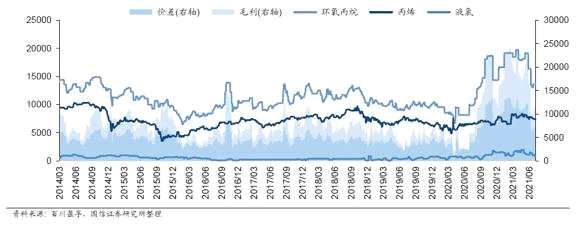 2014年4月-2021年6月環(huán)氧丙烷價(jià)格走勢(shì)圖。圖片來源:國(guó)信證券