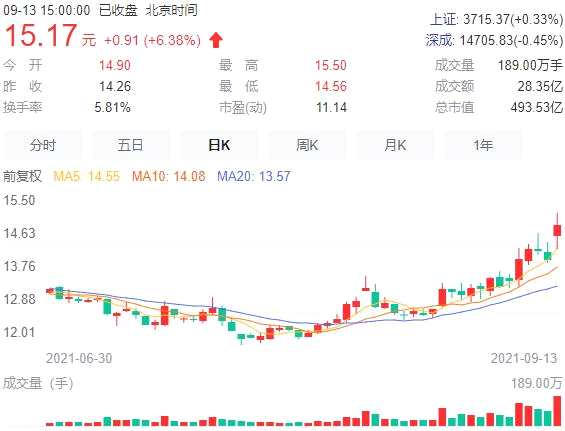 受此消息影響,截至9月13日收盤,浙江龍盛報價15.17元/股,漲幅6.38%,總市值493.53億元。