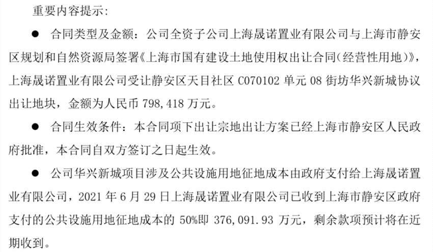 盡管如此,浙江龍盛加碼房產(chǎn)業(yè)務(wù)的步伐也沒有停歇。6月30日,公司公告,其全資子公司上海晟諾置業(yè)有限公司與上海市靜安區(qū)規(guī)劃和自然資源局簽署合同,擬以79.84億元受讓靜安區(qū)天目社區(qū)協(xié)議出讓地塊。