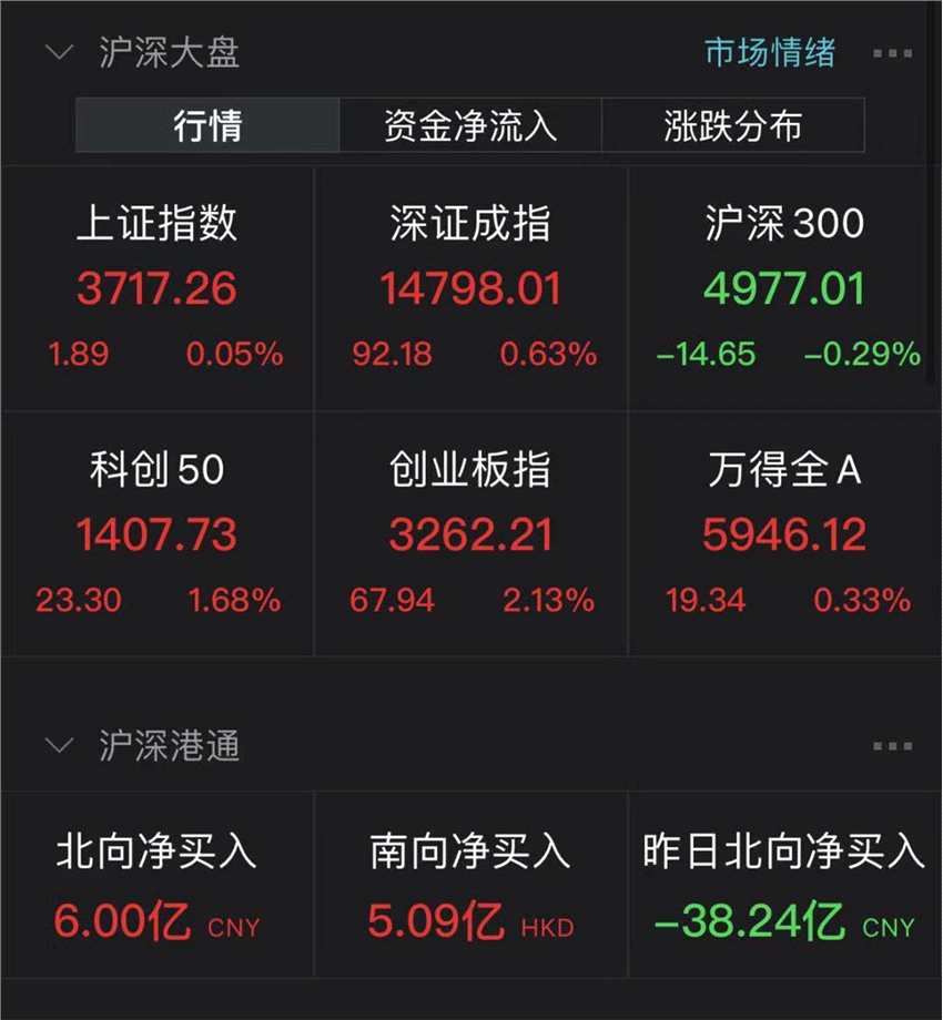截至午間收盤,上證指數(shù)上漲0.05%,深證成指上漲0.63%,創(chuàng)業(yè)板指上漲2.13%。兩市半日成交額超8900億元,其中滬市成交4060.39億元,深市成交4918.46億元。