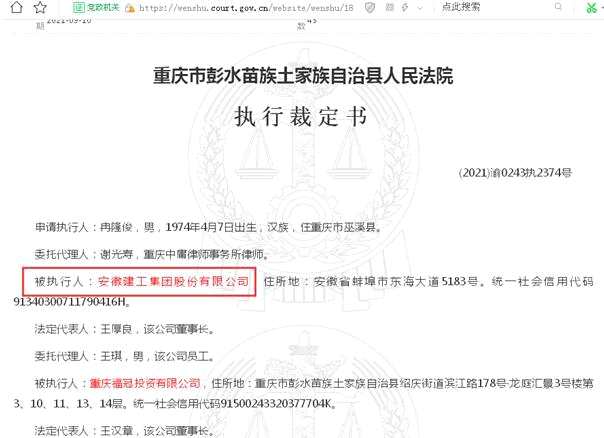 安徽建工,被執(zhí)行人