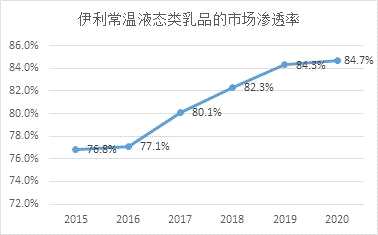截至2021年6月,伊利常溫液態(tài)類乳品的市場滲透率為85.7%,比上年同期提升了1.5個百分點(diǎn)。截至2020年底,伊利服務(wù)的鄉(xiāng)鎮(zhèn)村網(wǎng)點(diǎn)近109.6萬家。據(jù)蒙牛2021年中期業(yè)績公告,截至2021年6月,蒙?!版?zhèn)村通”項(xiàng)目直控的鎮(zhèn)村網(wǎng)點(diǎn)為60多萬家。