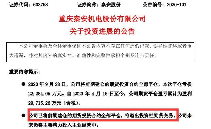 秦安股份曾宣布退出投資性期貨交易