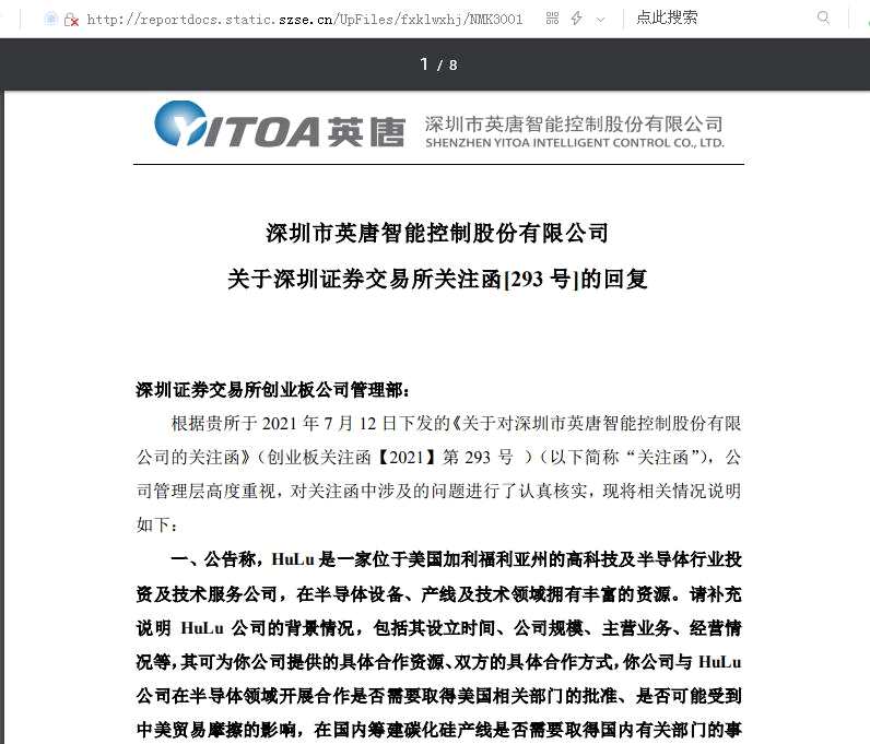 “其一,公告稱,HuLu 是一家位于美國加利福利亞州的高科技及半導(dǎo)體行業(yè)投資及技術(shù)服務(wù)公司,在半導(dǎo)體設(shè)備、產(chǎn)線及技術(shù)領(lǐng)域擁有豐富的資源。請補充說明 HuLu 公司的背景情況,包括其設(shè)立時間、公司規(guī)模、主營業(yè)務(wù)、經(jīng)營情況等,其可為你公司提供的具體合作資源、雙方的具體合作方式,你公司與 HuLu公司在半導(dǎo)體領(lǐng)域開展合作是否需要取得美國相關(guān)部門的批準、是否可能受到中美貿(mào)易摩擦的影響,在國內(nèi)籌建碳化硅產(chǎn)線是否需要取得國內(nèi)有關(guān)部門的事前審批,相關(guān)合作在政策上是否具備可行性?!?/p>