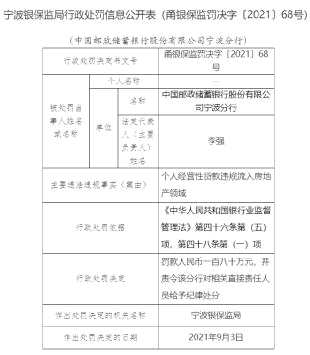 寧波和合肥也是房地產(chǎn)違規(guī)貸款的“重災(zāi)區(qū)”。9月3日,寧波銀保監(jiān)局開出的6張罰單涉及貸款違規(guī)流入房地產(chǎn)領(lǐng)域。中國郵政儲蓄銀行寧波分行因個人經(jīng)營性貸款違規(guī)流入房地產(chǎn)領(lǐng)域,吃下180萬罰單,相關(guān)責(zé)任人也被給以紀(jì)律處分。浙商銀行(601916)寧波分行因個人經(jīng)營性貸款違規(guī)流入房地產(chǎn)領(lǐng)域、貸款管理不審慎,被罰款160萬。寧波寧海農(nóng)村商業(yè)銀行因經(jīng)營用途貸款違規(guī)流入房地產(chǎn)領(lǐng)域被罰150萬。