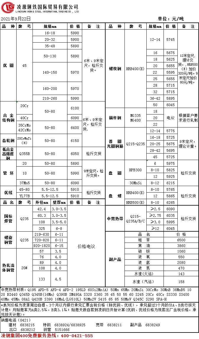 摘要: 9月22日凌鋼掛牌價格