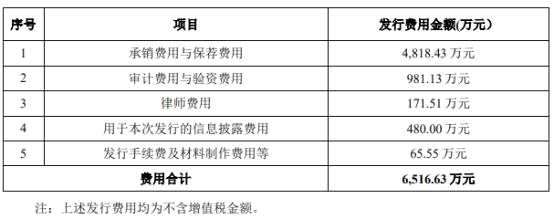 嶸泰股份的發(fā)行費用總計6516.63萬元,其中,支付給東方證券承銷保薦有限公司的承銷費用與保薦費用4818.43萬元,支付北京市環(huán)球律師事務所的律師費用171.51萬元,支付中匯會計師事務所(特殊普通合伙)的審計費用與驗資費用981.13萬元。