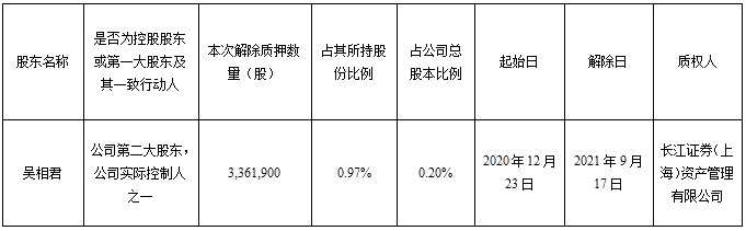 該部分股份于20 21 年 9 月 17 日 解除 質(zhì)押,并在中國(guó)證券登記結(jié)算有限責(zé)任公司深圳分公司辦理了證券 解除 質(zhì)押相關(guān)登記手續(xù)。