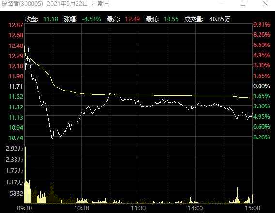 二級(jí)市場(chǎng)上,9月22日,探路者早盤高開后突然下跌,最大跌幅達(dá)9.91%,最終以單日下跌4.53%報(bào)收11.18元;9月23日再次下跌4.65%,收?qǐng)?bào)10.66元。