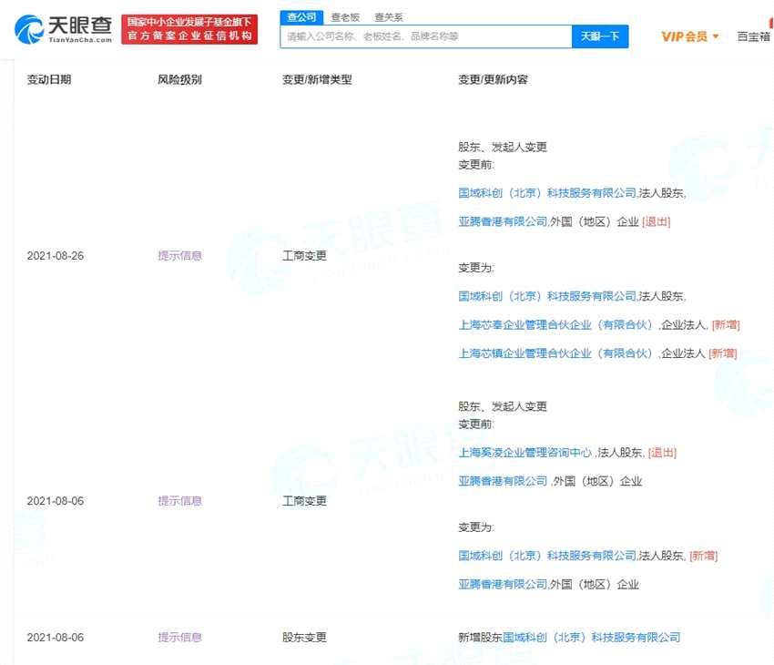 此番變更之后,國(guó)域科創(chuàng)與亞騰香港成為了北京芯能的股東。