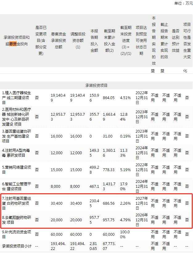 愛美客第四次創(chuàng)業(yè)板IPO擬募集資金20.72億元,主要用于植入醫(yī)療器械生產(chǎn)線二期建設(shè)項(xiàng)目、醫(yī)用材料和醫(yī)療器械創(chuàng)新轉(zhuǎn)化研發(fā)中心及新品研發(fā)建設(shè)項(xiàng)目、基因重組蛋白研發(fā)生產(chǎn)基地建設(shè)項(xiàng)目、注射用A型肉毒毒素研發(fā)項(xiàng)目、營銷網(wǎng)絡(luò)建設(shè)項(xiàng)目、智能工業(yè)管理平臺建設(shè)項(xiàng)目、注射用基因重組蛋白藥物研發(fā)項(xiàng)目、去氧膽酸藥物研發(fā)項(xiàng)目以及補(bǔ)充流動資金。愛美客創(chuàng)業(yè)板IPO實(shí)際募集資金總額35.72億元,實(shí)際募資凈額34.35億元,首發(fā)超募資金15.00億元。