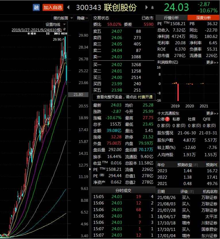 摘要: 今年7月以來,聯(lián)創(chuàng)股份(300343)是除新股外,A股最牛的股票之一,最高漲幅超過700%。但沒想到的是,近兩日聯(lián)創(chuàng)股份卻連續(xù)大跌――9月23日下跌8.50%,24日下跌10.67%,
