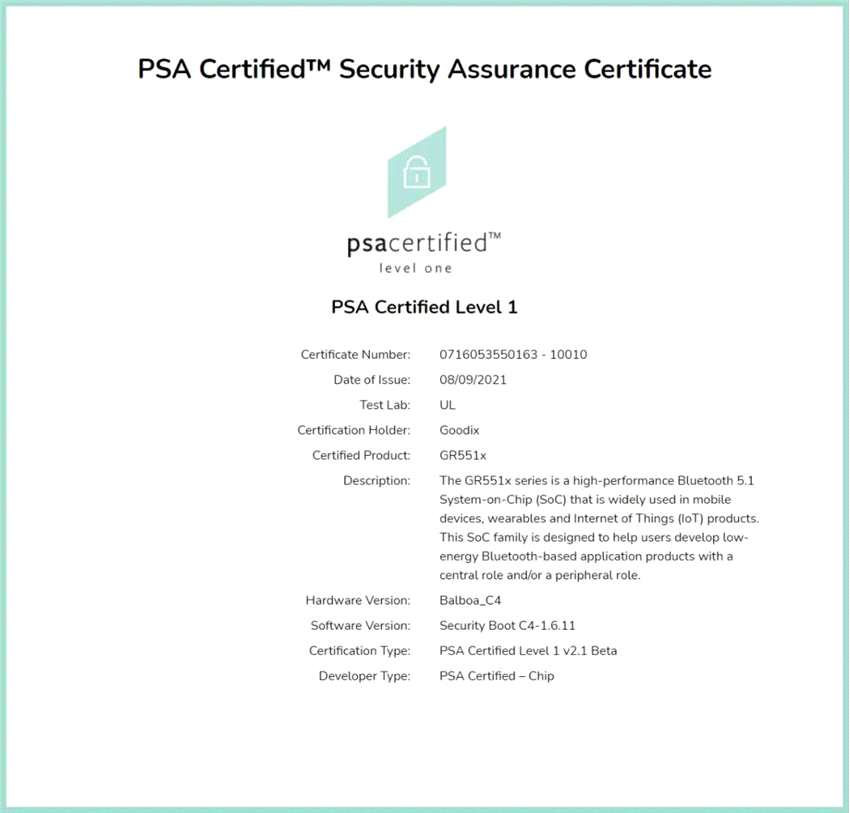 PSA(Platform Security Architecture)認證是Arm聯(lián)合多家獨立安全測試實驗室及咨詢機構(gòu),面向物聯(lián)網(wǎng)芯片、軟件和設(shè)備推出的相關(guān)測試與認證。匯頂科技GR551x系列SoC滿足PSA Certified Level 1模型的 10 個安全目標,符合美國(NISTIR 8259A)、歐盟(ETSI EN 303 645)等多個國家和地區(qū)物聯(lián)網(wǎng)相關(guān)的安全法律法規(guī),為物聯(lián)網(wǎng)設(shè)備提供了安全可信的基礎(chǔ)。