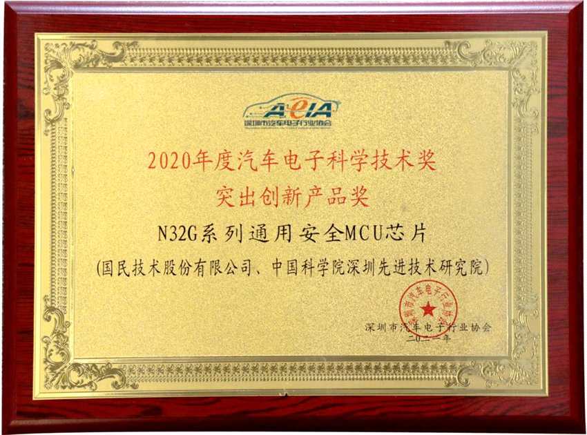 摘要: 9月25日,“2021中國(深圳)國際汽車電子產(chǎn)業(yè)年會暨2020度汽車電子科學(xué)技術(shù)獎頒獎典禮”在深圳隆重舉行,國民技術(shù)(300077)N32G系列通用安全MCU芯片榮獲中國汽車電子行業(yè)年度大獎――“2