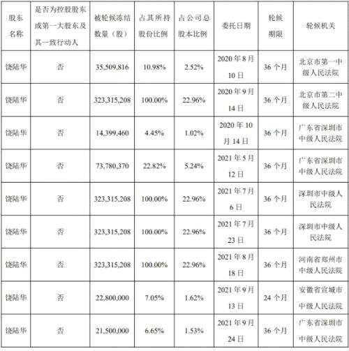 圖表2:截至9月27日,饒陸華所持股份累計被輪候凍結情況