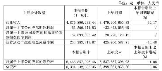 在經(jīng)營狀況方面,鵬欣資源上半年扭虧為盈。中報(bào)顯示,上半年公司營業(yè)收入48.77億元,同比增長40.17%;歸屬于母公司所有者的凈利潤6150.02萬元,上年同期凈虧損3234.31萬元,扭虧為盈;基本每股收益0.0278元,上年同期基本每股收益-0.0146元。