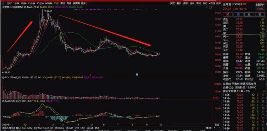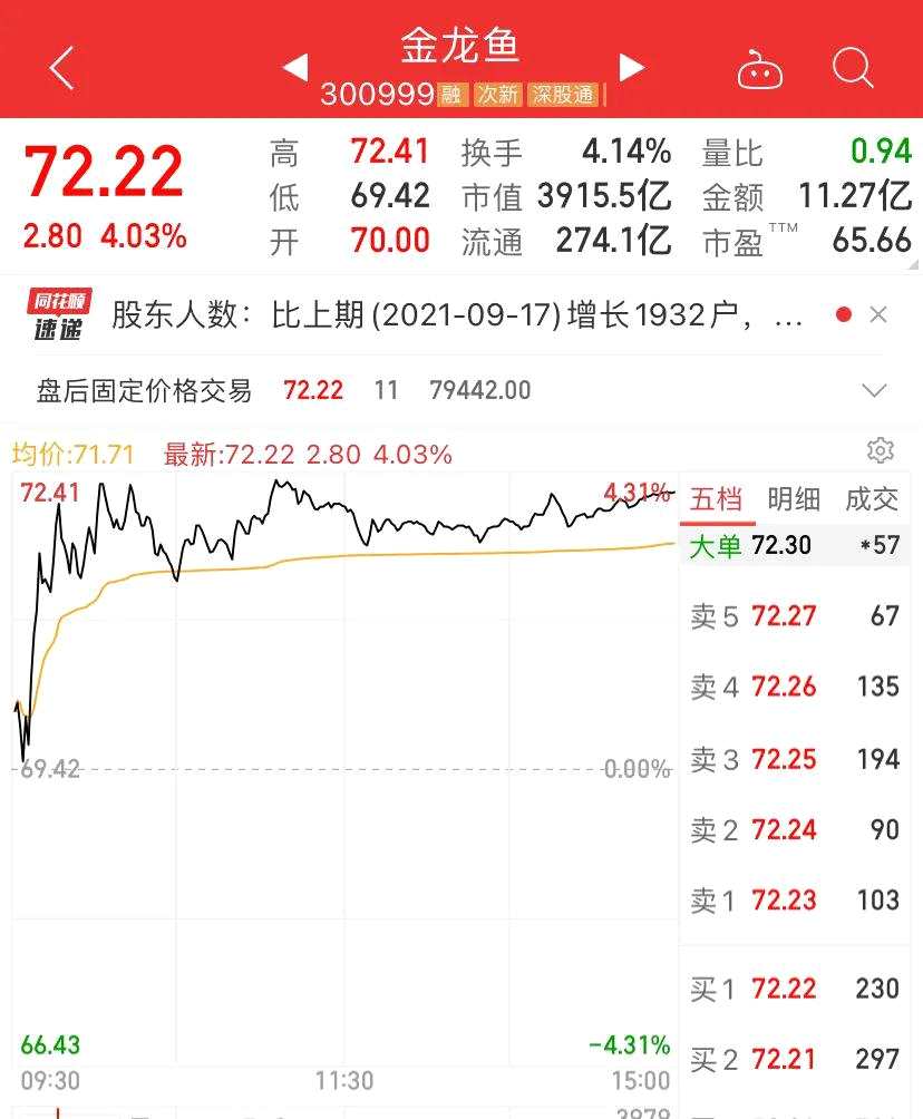 雖然金龍魚上市后股價坐了過山車,25.7元的發(fā)行價,一度沖高到145元,如今跌回到72元,股價高位下來腰斬,但相對發(fā)行價仍然是很大漲幅。金龍魚市值仍有3915億元。