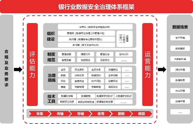 天融信銀行業(yè)數(shù)據(jù)安全治理解決方案根據(jù)外部監(jiān)管要求、銀行業(yè)務特點及自身發(fā)展的需要,采用科學的數(shù)據(jù)安全治理方法,自上而下進行組織建設、管理建設、技術建設,并融合治理評估、安全運營,構建具有銀行業(yè)特色的數(shù)據(jù)安全治理體系,提升數(shù)據(jù)安全保障能力,幫助用戶滿足合規(guī)要求、抵御攻擊威脅、實現(xiàn)數(shù)據(jù)安全與業(yè)務發(fā)展的雙向促進。