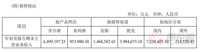 具體產(chǎn)品來看,2021年前三季度,按產(chǎn)品檔次,貴州茅臺(tái)銷售茅臺(tái)酒649.92億元,系列酒95.40億元。