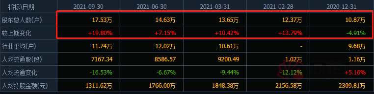 與國(guó)內(nèi)機(jī)構(gòu)一樣,近來散戶投資者也看好茅臺(tái)。三季報(bào)數(shù)據(jù)顯示,截至2021年9月30日公司股東戶數(shù)為17.53萬戶,較上期(2021年6月30日)增加2.9萬戶,增幅達(dá)19.8%。