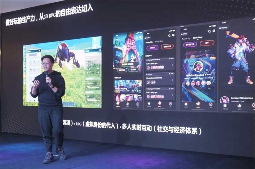 游戲被認為是當前最接近元宇宙的場景?;芋w驗創(chuàng)作平臺Yahaha戰(zhàn)略負責人喬海鑫在隨后《元宇宙浪潮下的游戲生產(chǎn)力創(chuàng)新》的演講中提到,“Yahaha要做的是去豐富供給側,而不是改革供給側?!背闪⒂?020年的Yahaha Studios推出無代碼多人互動娛樂創(chuàng)作平臺“Yahaha”,其本質是一款3D互動內容與社交平臺。