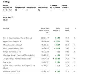 信披材料寫道,基金10月的表現(xiàn)超越基準(MSCI中國a股在岸指數(shù))。相較于3季度的快速行業(yè)輪換,10月市場相對平靜。選股貢獻了本月的主要收益。來自科技、工業(yè)、可選消費等行業(yè)的股票對本月收益貢獻較大。個股方面,貢獻最大的是只全球鋰電池龍頭公司股票。10月,這只股票價格創(chuàng)出新高。電池需求強勁,這只股票進而電動汽車整個行業(yè)都受益。到月底,這家公司的表現(xiàn)是超出預期的。