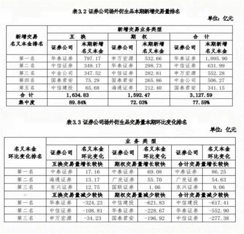 根據(jù)中證協(xié)數(shù)據(jù)2020年11月新增名義本金3127.59億元,其中收益互換新增1634.83億元;場(chǎng)外期權(quán)新增1592.47億元,華泰證券本期新增額度高達(dá)1095.90億元占總新增的35.04%收益互換類(lèi)業(yè)務(wù)CR5為89.84%,期權(quán)類(lèi)業(yè)務(wù)CR5為72.03%。衍生品業(yè)務(wù)上的高集中度主要是因?yàn)閳?chǎng)外期權(quán)政策對(duì)于一級(jí)交易商規(guī)模的限制,一級(jí)交易商擴(kuò)充預(yù)期提高,未來(lái)場(chǎng)外衍生品業(yè)務(wù)競(jìng)爭(zhēng)格局可能將加劇。
