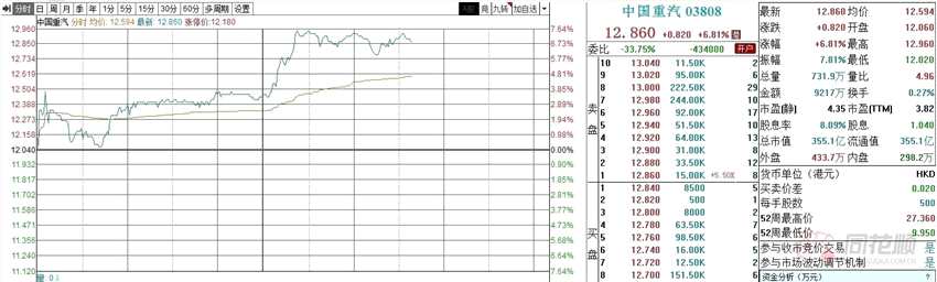 港股方面,機(jī)械股午后拉升明顯,【中國(guó)重汽(000951)、股吧】(000951)漲超7%,中聯(lián)重科(000157)、中國(guó)龍工跟漲。