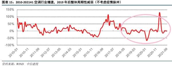 而家電行業(yè)在2018年需求遠(yuǎn)低于預(yù)期,部分房企銷售期房但是因?yàn)橘Y金緊張遲遲未竣工交付,導(dǎo)致地產(chǎn)后周期的家電行業(yè)景氣度陷于低谷??照{(diào)則由于2017年的高基數(shù)導(dǎo)致銷售增速換擋。美的集團(tuán)估值從20倍以上的估值一度又跌至接近10倍的區(qū)間。