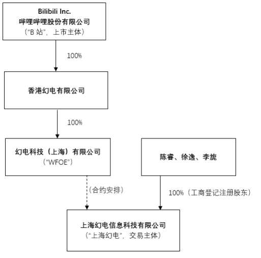 B站通過間接持有100%股權的幻電科技(上海)有限公司(以下簡稱“WFOE”),與上?;秒娂捌涔ど痰怯浌蓶|簽署了一系列協(xié)議,據(jù)此WFOE獲得了對上?;秒姷挠行Э刂茩?。通過上述合約安排,并根據(jù)美國公認會計準則,上?;秒姵蔀锽站并表關聯(lián)實體,納入B站合并財務報表范圍。