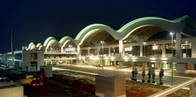 該項(xiàng)目建筑面積合計(jì)20萬(wàn)平方米。它可以供16架中型機(jī)身飛機(jī)或8架寬體飛機(jī)同時(shí)飛行。它有七個(gè)拱形開(kāi)間,拱形屋頂交替為32米和48米,采用空間框架桁架。上部結(jié)構(gòu)是一個(gè)鋼制力矩框架, 使用了包括292個(gè)摩擦擺隔震支座 在內(nèi)幾百套隔震產(chǎn)品。航站樓于2009年開(kāi)放。比起我國(guó)同期投入使用的48.5萬(wàn)平方米的昆明長(zhǎng)水機(jī)場(chǎng)隔震航站樓規(guī)模還是小很多。