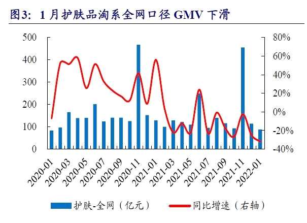 一月份是護膚品行業(yè)傳統(tǒng)淡季,全網(wǎng)成交額同環(huán)比均有一定程度的下滑。