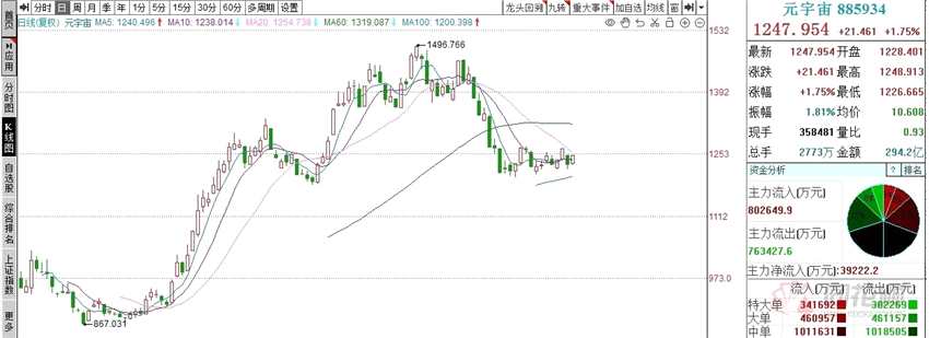 元宇宙板塊跟隨大盤(pán)走強(qiáng),但A股今日領(lǐng)漲板塊為芯片、軍工、鋰電等,元宇宙板塊并未走出獨(dú)立行情。截至收盤(pán),元宇宙指數(shù)漲1.75%,K線圖上來(lái)看仍處于震蕩區(qū)間中。